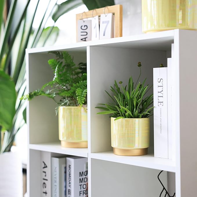 - Rainbow Pearlescent Glazed Design With Drain Holes: The rich color of this ceramic flower pot is covered a rainbowl look. Deep planting space promotes root growth to keep plants healthy. Large drain holes are good for draining, it is suitable for orchids, succulents, cacti, other flowers and green plants, perfect for home decoration.