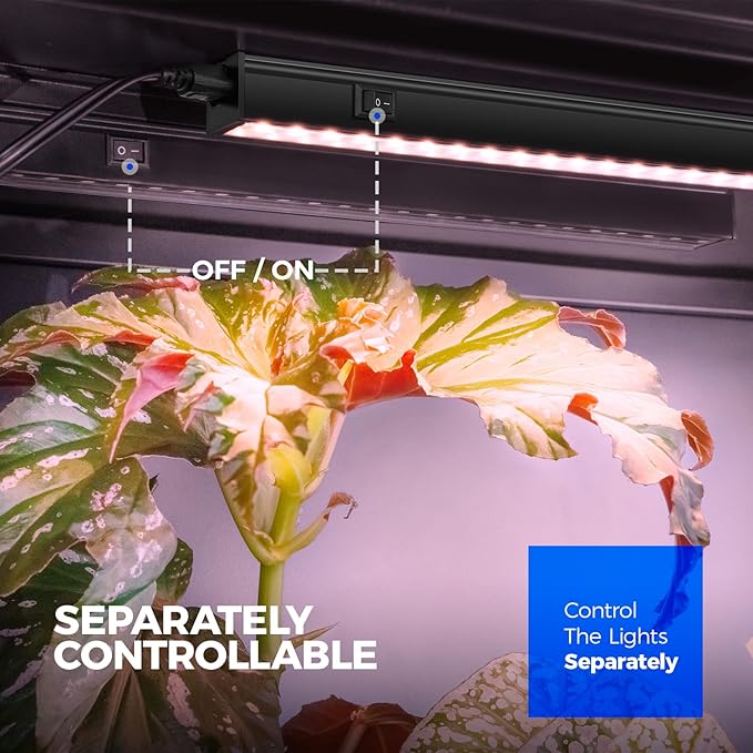 - Separately Controllable: This small plant lamp fixture have on off switch on the surface of housing, controlling the lights separately or together according PPFD that plants need