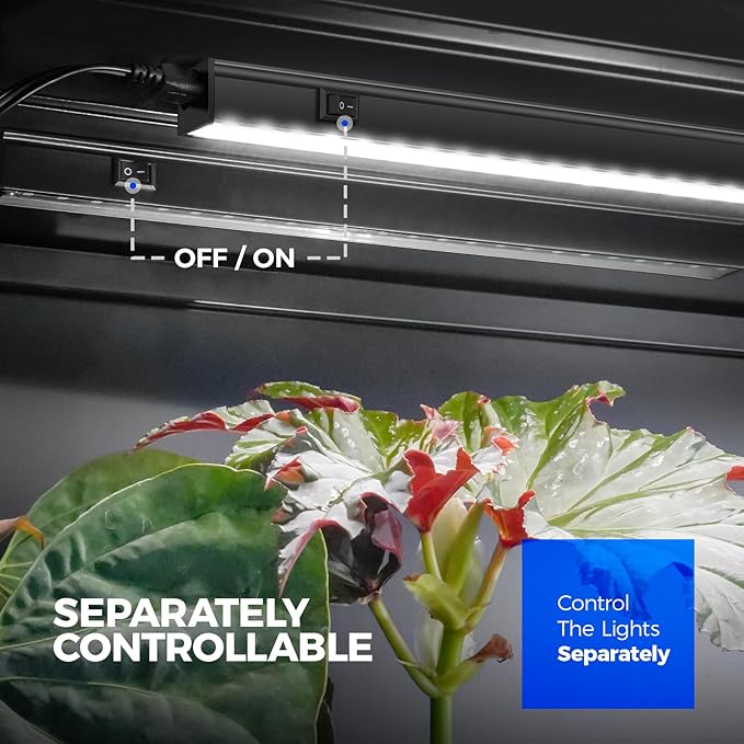- Separately Controllable: Each t5 plant grow light have on off switch on the surface of housing, controlling the lights separately or together according PPFD that plants need