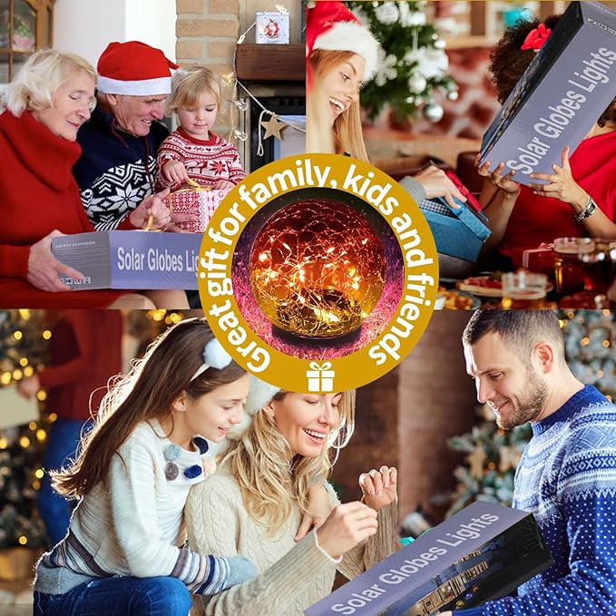 Solar Globe Lights Outdoor Waterproof - Cracked Glass Ball Lights for Garden, Patio, Yard, Lawn and Backyard Decor - Decorative Orbs for Outside