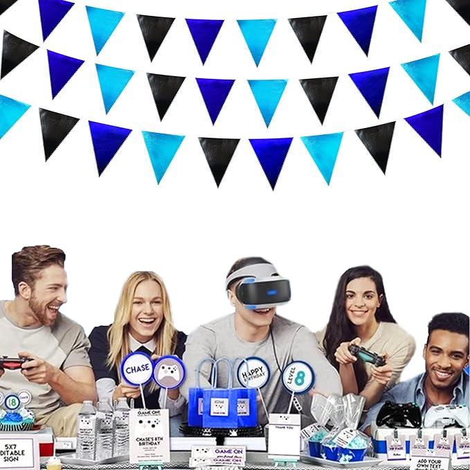 - ā«Perfect Choice - This black blue triangle bunting flag are good ideal for any kind of celebration,party,festival,events or other occasion.It can be used for both kids and adults.Such as graduation,video game party,nautical party,birthday,retirement,baby shower,Halloween party,wedding,anniversary,picnics,outdoor activities,family gatherings,holiday party,Christmas,new year party,hen party etc.