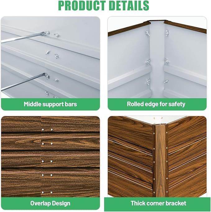 - EASY ASSEMBLY: Our garden box with assembly manual and tools allow you to easily assemble within a short time. The planter raised beds with safe rolled edge to prevent injury.Note: Peel off the outer protective film before assembly.