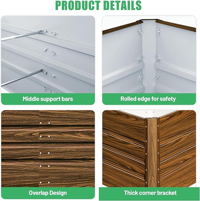 - DURABLE & STABLE: Galvanized raised garden bed is made of upgraded coated steel plate, which has strong anti-rust and corrosion resistance. Thickened steel and reinforced corners that allows it to accommodate the weight of the more soil and plants.
