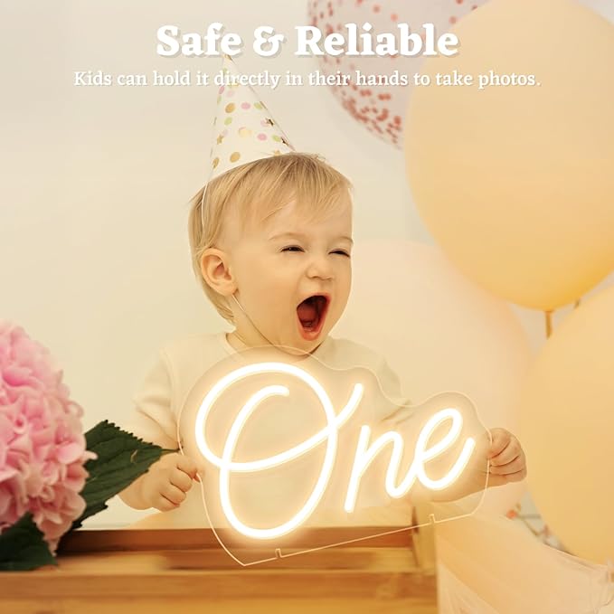 - 【One Sign for First Birthday Photo Prop】With a shiny warm white neon light appearance, first birthday photo props can be the highlight of a photo or party decoration.