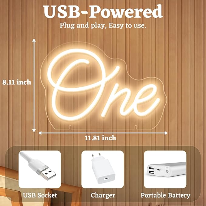 One Neon Sign for First Birthday, LED Neon Lights One Table Number Neon Light Lamp for Home Birthday Party Decor Photo Prop Christmas Gift