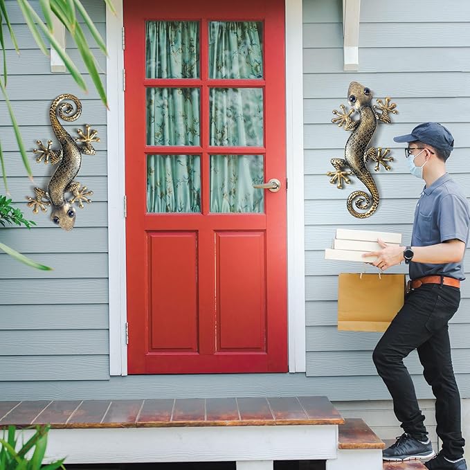 - 【Lizard Wall Decor】- Measures 15x8x0.8 inch, weight 0.47 lbs and Made of premium metal and handcrafted bronze body structure. Eco-friendly materials are safe and pollution-free and will not rust or fade.