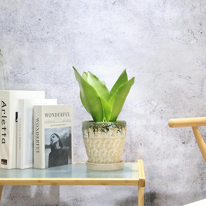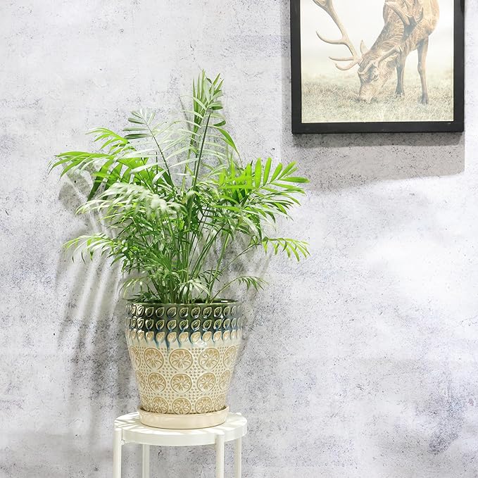- Elaborate Composition: rich embossed pattern design of 8inch + 6 inch ceramic flower pots, add vitality and sense of secret to your home