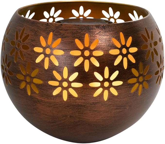 - 8” Metal Decorative Bowl - The Solar Fire Bowl features a stylish metal design, adding a touch of sophistication to your outdoor garden decor while serving as a functional solar table lamp, lantern and garden decor.