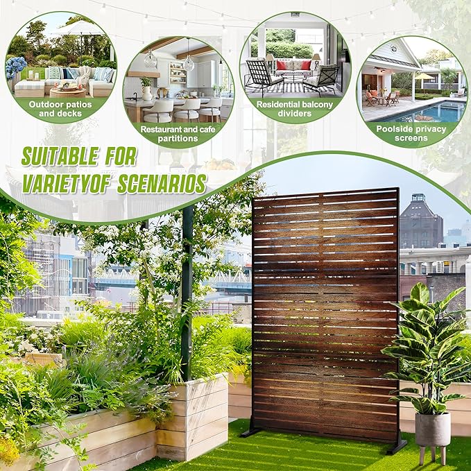- 【Versatile Installation】Our outdoor metal privacy screens can be installed vertically at adjustable heights (72" or 76") or horizontally, making them ideal for courtyard hanging or wall mounting to enhance your outdoor decor.