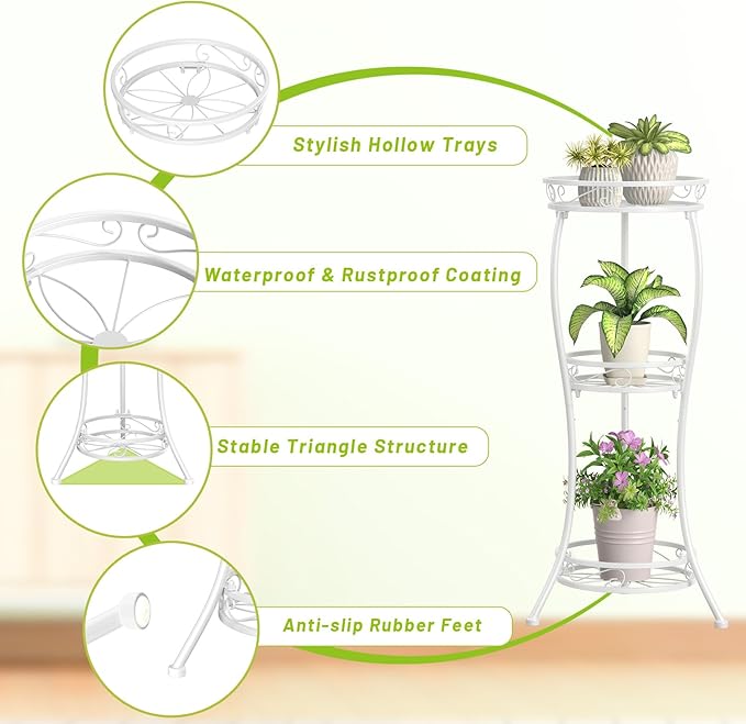 - 【Space Saving Corner Plant Stand Outdoor】:Provides 3-tier generous storage space for displaying your plants and flowers. Thin and tall design is perfect for corners, entryways, gardens, offices or bathrooms without taking up a lot of space.