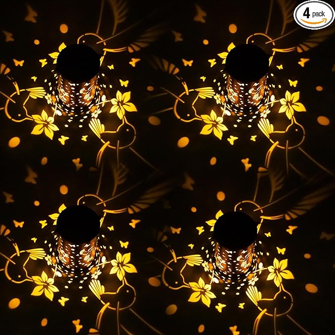 - Gorgeous & imaginative Garden Decor - Fusion the retro gold, copper of exteriors and irregular pattern inside, at darkness, the solar lantern casting a bright, warm light with hummingbird patterns, which looks like they are real and flying