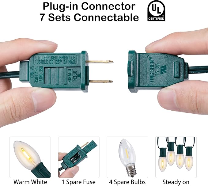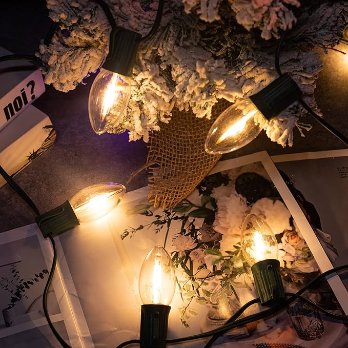 - Safety & Durable: UL certified C9 led christmas lights outdoor is built with weatherproof technology, which can withstand extreme temperatures, rain, wind, and damp climates. Safe and durable electric bistro lights either with a built-in spare fuse for easy replacement