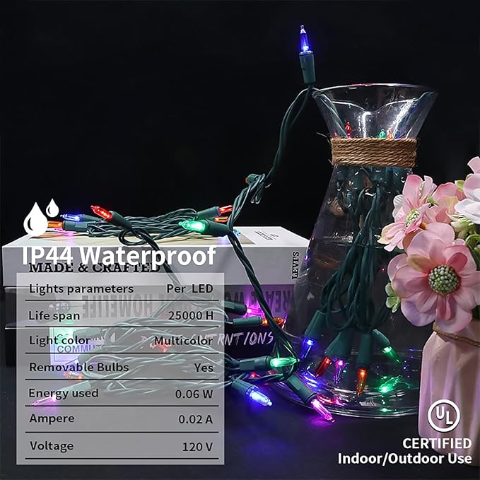 - 【Indoor and Outdoor Widely Usage】: Christmas tree lights waterproof grade is IP44, Great for outdoor Christmas, Halloween, Thankgiving Day decorations