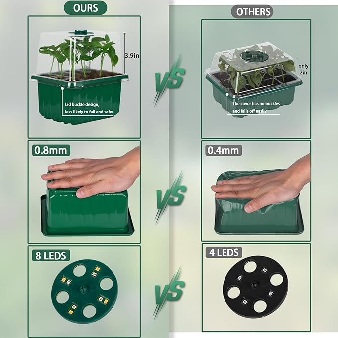 - EFFICIENT GROWING & WIDELY APPLIED: Our seed starter kit is the ideal size for growing small seeds from seedlings of various plants. Suitable for a wide range of plants. It can artificially control the light quality, light intensity, photoperiod; humidity and temperature, so that the plants are always in the best growing environment, effectively shorten the growing time, and improve crop yield and quality. Ideal gift for novice gardeners.