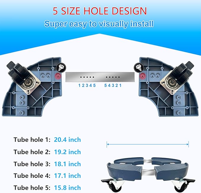 - 【5 Size Holes】Newer version! 5 screw holes in the stainless steel tube correspond to 5 different sizes: 15.8 in, 17.1 in, 18.1 in, 19.2 in, 20.4 in. This 15.8 in - 20.4 in adjustable plant caddy with wheels can perfectly fit your need, suit for most types of pots and items.