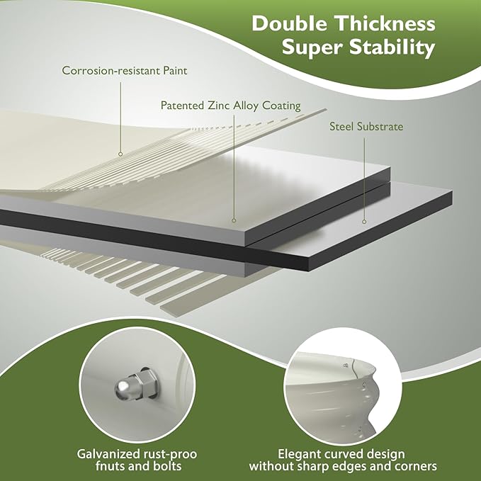 - Upgraded Durability and Structure: The average thickness of this galvanized corrugated steel garden bed reaches 0.8mm, and the thickest part can reach 1.8mm, Multi-screw reinforcement prevents deformation and can be reused for many years