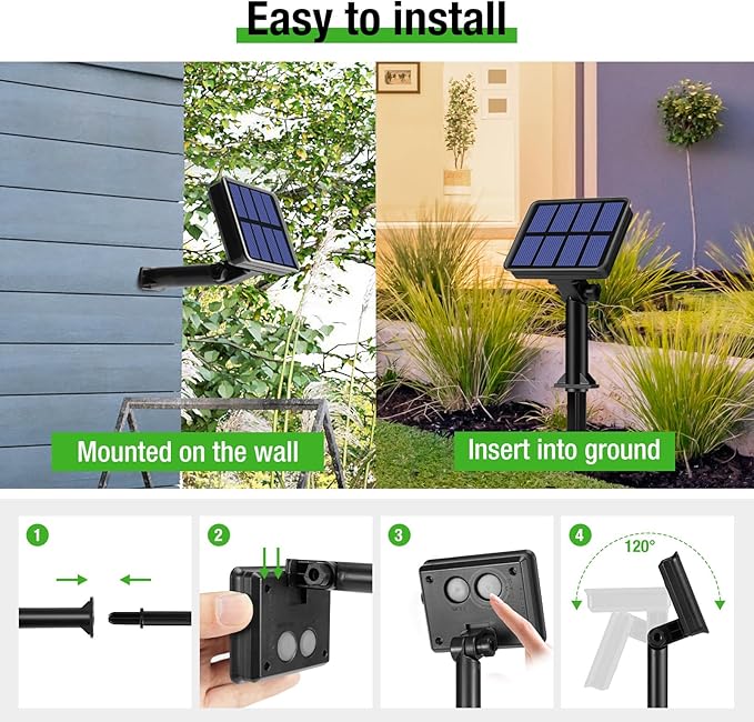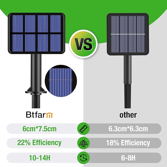 - 【Waterproof Design for All Weather】Light string and solar panel are IP65 waterproof to withstand any weather, either rain, sun, or snow. Safe for outdoor use, Don't worry about short circuits or bad weather damage (can't soak in water)