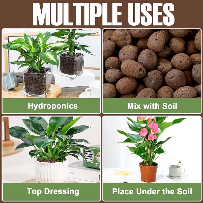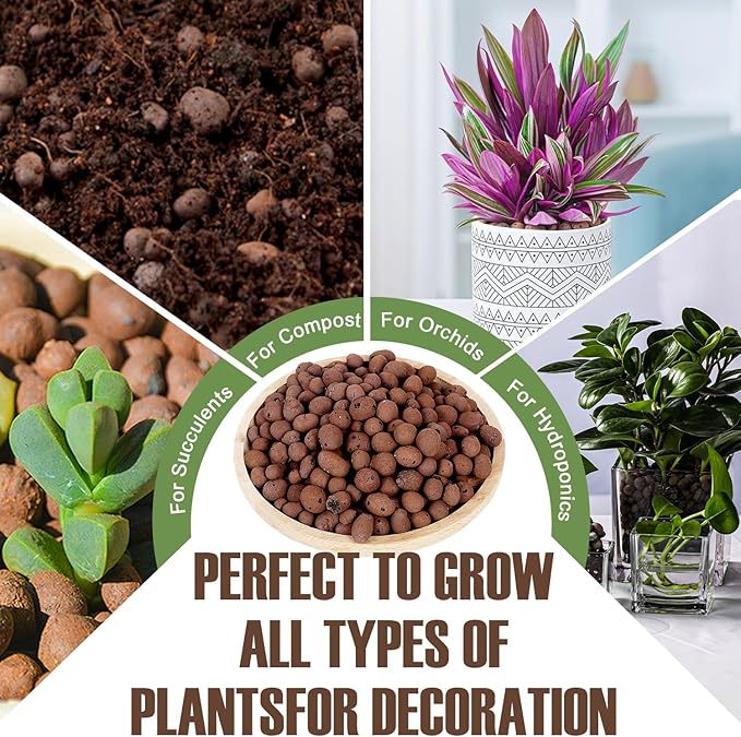 - 【EXCELLENT DRAINAGE】Expanded clay pebbles provide good drainage and water retention for plants.When clay pebbles are placed at the bottom of the pot, it prevents plant roots from rotting. Putting them on top not only keeps the soil wetting, but also can be used to decorate the plants.