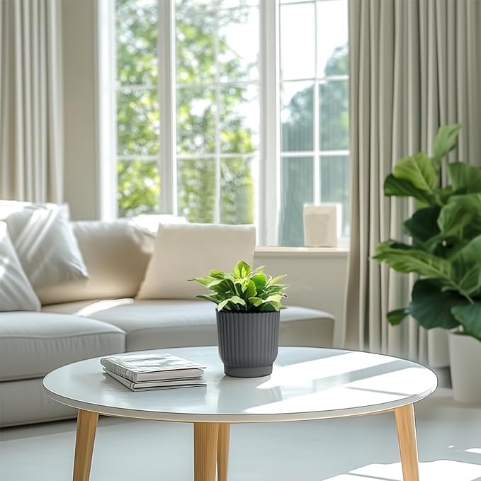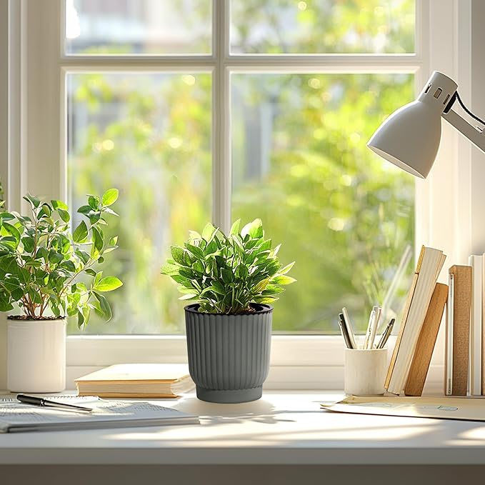 T4U 4.5 Inch Self Watering Pots for Indoor Plants, 6 Pack Gray Plastic Flower Pots for All House Plants, Flowers, African Violets