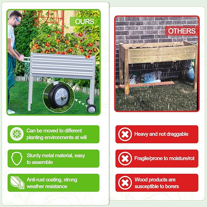 - Style : Galvanized Raised Garden Bed with Legs on Wheels