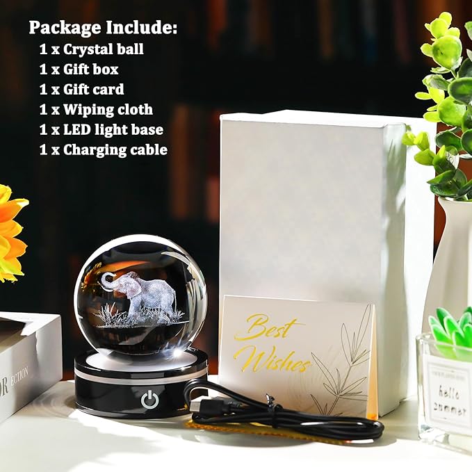 - 3D Elephant Crystal Ball: The elephant figurine is made of high-quality k9 crystal making the crystal ball more transparent and glossier, 3d laser engraving technology design creates exquisite elephant image inside. Even after a lifetime of use, crystals never lose their original shine