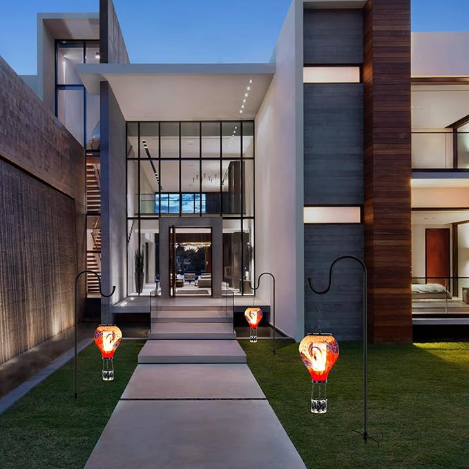 - 【Wide Application】Solar hot air balloon lantern with flame is a great home decor. You can hang the solar light on porches, trees, pergolas, balconies, or ledge. Add elegance and color to your outdoor space with this beautifully crafted solar powered hot air balloon lantern.