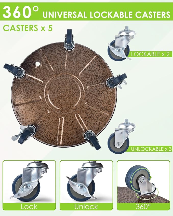 - đ·ăMaterială-The rolling plant stands is made of thickened carbon steel plate material, which is very solid and durable, and has a strong load-bearing capacity. The surface of the plant roller is treated with environmentally friendly and harmless paint, anti-rust, anti-slip, durable and not easy to fade which can be used in indoor or outdoor.