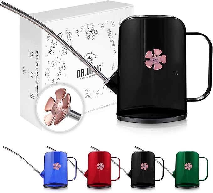 - NEW DESIGN: The DR.UANG Indoor watering can has a flower-shaped head and offers two watering methods, whether the plant needs to water the leaves or the roots, it can be easily done. When the shower head is not in use, the shower head can be conveniently installed on the pot body for easy storage. A design small watering can will become a decoration in your room.