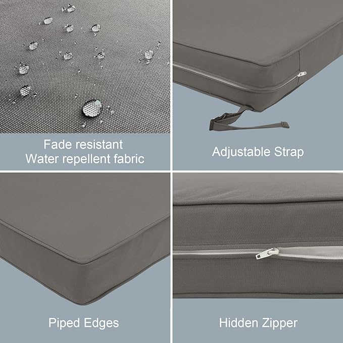 - NON-SLIP DESIGN: Each outdoor furniture cushion with adjustable straps help keep cushion securely attached to your chairs. You can sit back and relax without worrying about the cushions shifting or slipping