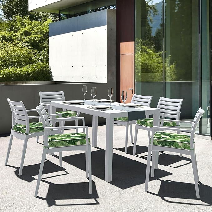 LVTXIII Patio Chair Cushions 19"x19"x3", Water-Repellent Outdoor Seat Cushions for Patio Furniture, Square Chair Pads with Ties for Home Garden Decoration, Set of 2, Swaying Palms Green