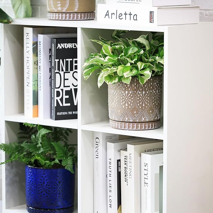 6 Inch Indoor Plant Pots with Drainage Holes and Saucers, Ceramic Planter for Plants, Flower Pot - Set of 2