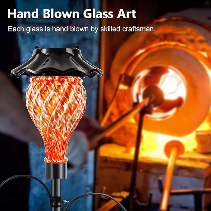 - EXQUISITE HAND BLOWN GLASS TOP: The spirally crafted hand-blown glass top combines aesthetics and functionality to create a unique, soft, tranquil atmosphere. The refreshing color adds to the ambiance and enhances your yard's appeal