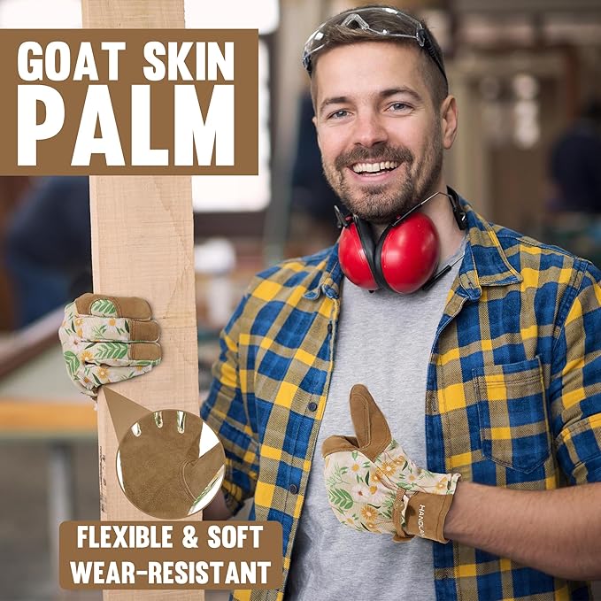• Womens Floral Gardening Gloves - Soft deerskin leather palm, superior abrasion and puncture resistance provides perfect protection for your hands.