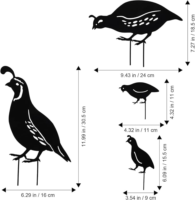 - Graceful Decoration: These elegant quail statues are suitable for outdoor decor such as your garden, patio, courtyard, backyard and house. Metal quail sculptures are eye catching and to your garden. The garden quail art decor is also great for your family or friends as a gardening present