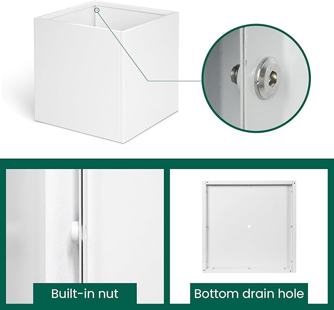 White Steel Planter Square Outdoor Planters Galvanized Steel Planter Box Indoor Metal Large Planters Cube Heavy Duty Flower Pot 16 Inch Modern Commercial Residential for Trees Patio Deck Yard Garden