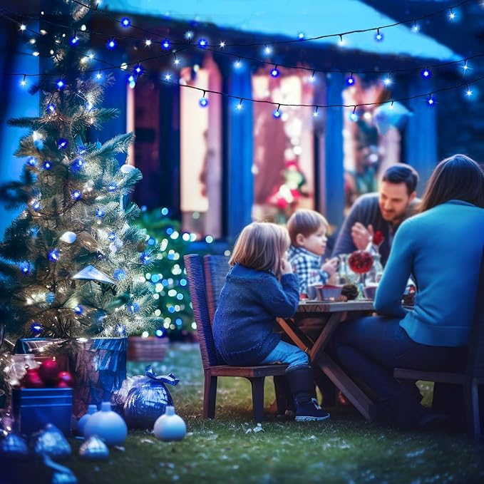JMEXSUSS 2 Pack Blue and White Solar String Lights, Each 100 LED 33ft Solar Christmas Lights Outdoor Waterproof, 8 Modes Green Wire Solar Lights for Outside Garden Patio Party Decoration