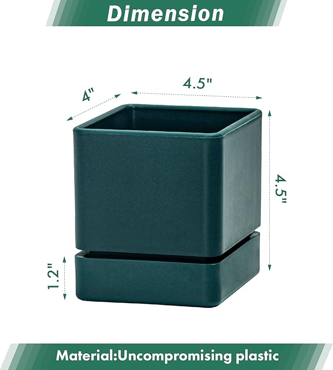 4 Inch Herb Planter Pot, Plastic Planter with Drainage Holes and Saucer, Modern Decorative Gardening Pot for Indoor Plants, Flowers, Herbs, Succulents, Green, Set of 3, 76-Y-C-3