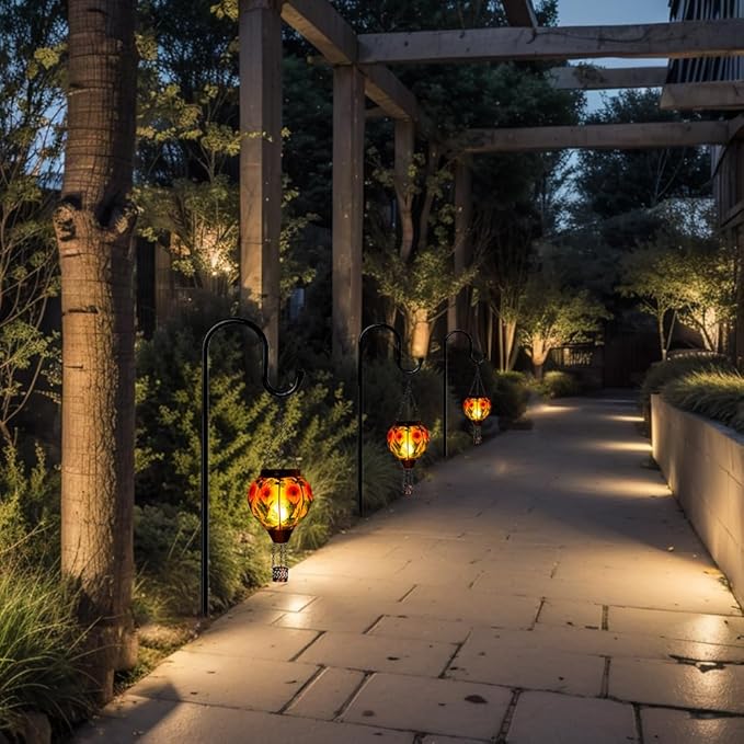 - Solar Lanterns Outdoor Hanging: The outdoor solar lanterns is equipped with solar panel and 600mAh/1.2V battery, which automatically charges during the day and illuminates at night. The solar lanterns does not generate extra electricity bills. When using it for the first time, please turn the switch to the "ON" position