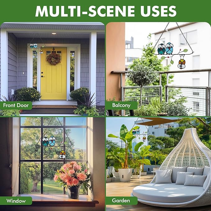 - Usage Scenarios: Display suncatchers in windows, wall art hangings, or as welcome signs on hanger stands and so on. They add brilliant color in any space, Wherever the place is - sliding glass doors, kitchen window, upstairs windows, circle-head window, front window, bedroom window, kitchen door, and porch.