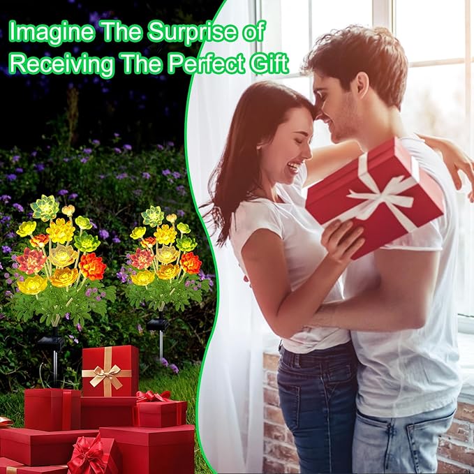 - Adapted for Any Occasion and Perfect Garden gift-Best recommend you buy more sets to make more gorgeous scene. Perfect outdoor decoration for yards,lawns,and sidewalks,and any occasions such as Christmas,weddings,parties,etc.It's the perfect gift for succulent plants lovers.Solar outdoor succulent lights is also an ideal gift for Mother's Day,Valentine's Day,anniversaries,and birthdays