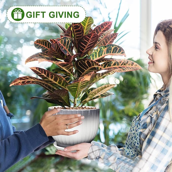 - 【Drainage holes&Separable saucer】The plant pots with drainage holes can greatly enhance drainage and air circulation, enabling healthy growth of plants.The plant pots saucer are capable serve as the base for the plant pots, making it more stable, easy to move, and without touching the plant pot itself, reducing interference with the plant.