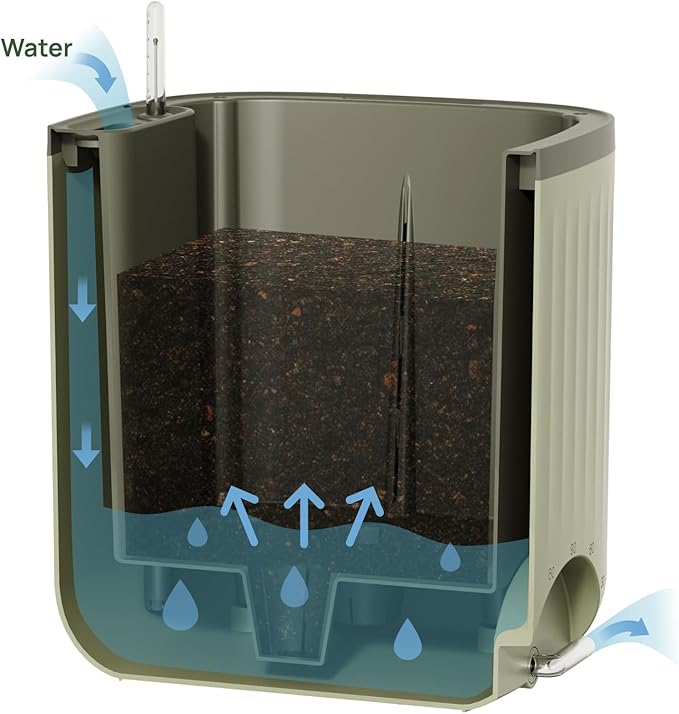 - Innovative Watering System: A reliable and efficient solution for delivering water to your plants without having to worry about overflow. Fill it once to water your planter for up to 1.5 months! This innovative design gives new gardeners a hassle-free way to start growing!