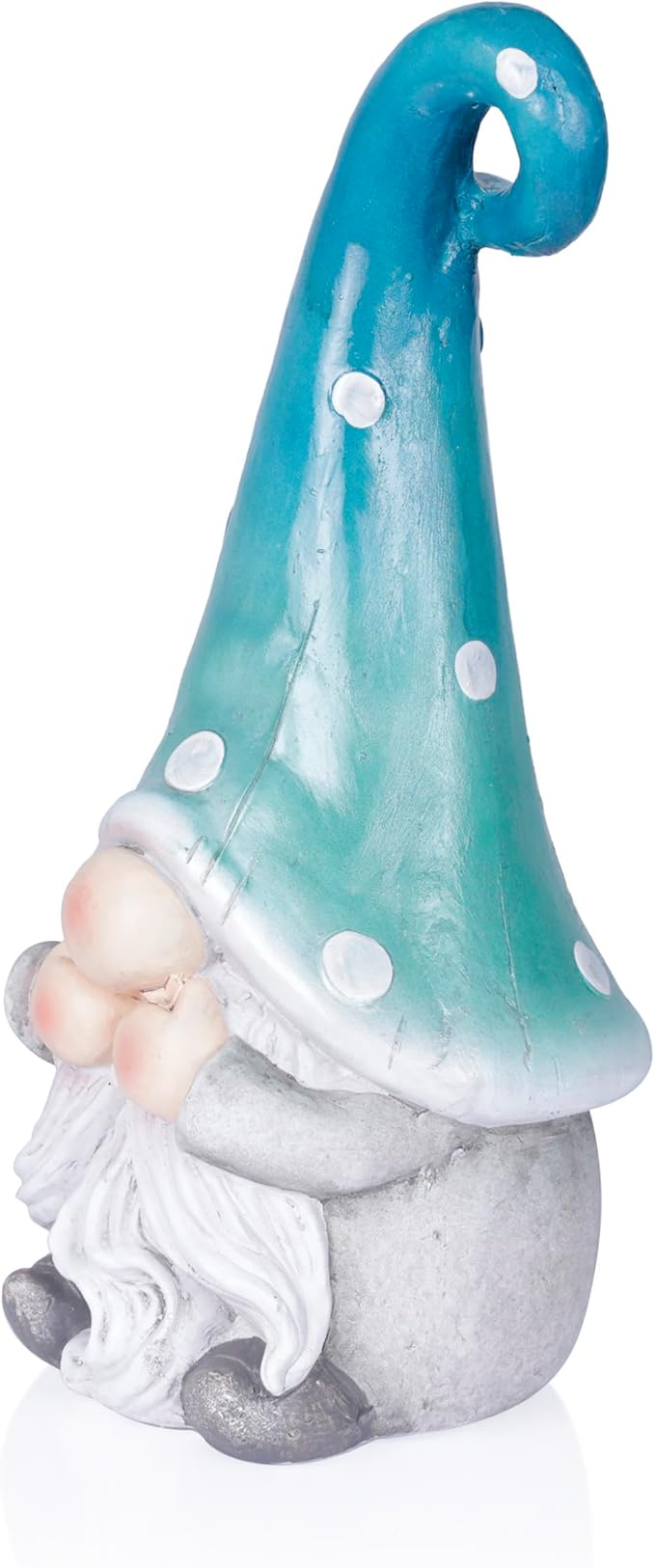 - CHARMING GARDEN GNOME: Add personality and charm to your outdoor space with this adorable gnome statue. The Speak No Evil design, paired with its friendly face and turqoise polka dot hat, brings a fun and quirky touch to any garden or patio.