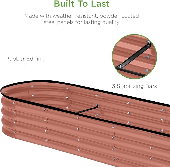 Best Choice Products 8x2x1ft Outdoor Metal Raised Garden Bed, Oval Deep Root Planter Box for Vegetables, Flowers, Herbs, and Succulents w/ 108 Gallon Capacity - Terracotta