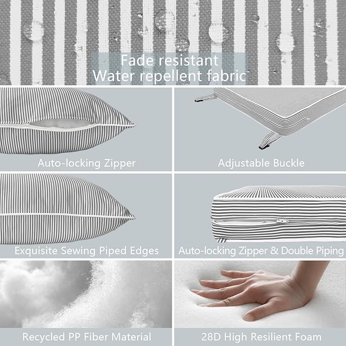 LVTXIII Outdoor Seat and Back Cushion Patio Deep Seat Cushion Set Seasonal Chair Cushion for Wicker Chairs and Garden Furniture Decoration, 24"x24"x4", Strip Grey