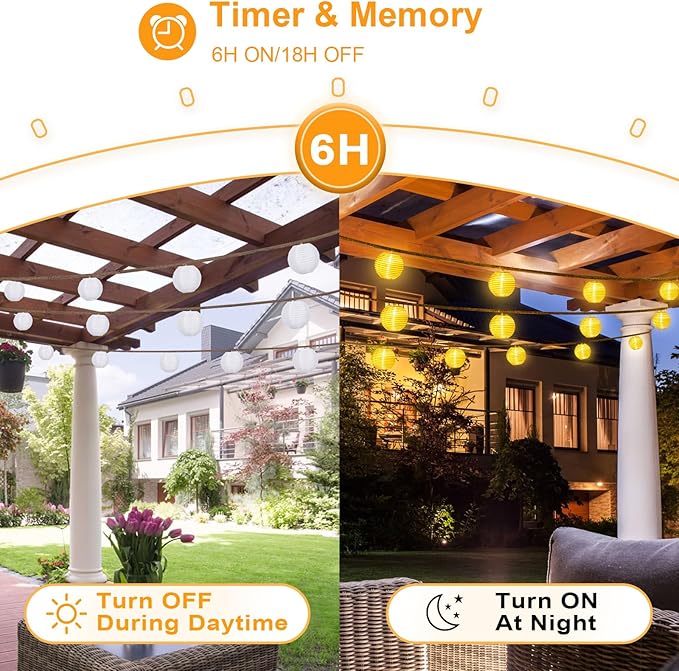 - 【 Waterproof lantern lights】: Designed with IP65 waterproof rating for the string lights and IP44 waterproof certification for the plug, these lights can withstand various weather conditions, ensuring long-lasting durability.