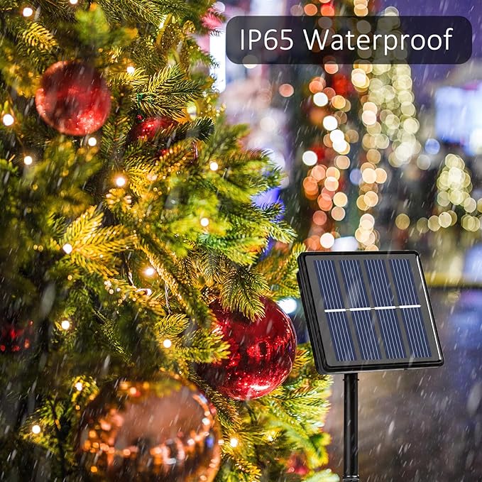 - SAFER USE AND WATERPROOF: With very low voltage batteries, the solar string lights are safe to touch after any hours of usage. Due to our IP44 waterproof box, outdoor fairy lights can against rain or snow at any angle, no more worries when there is no socket or power outage.