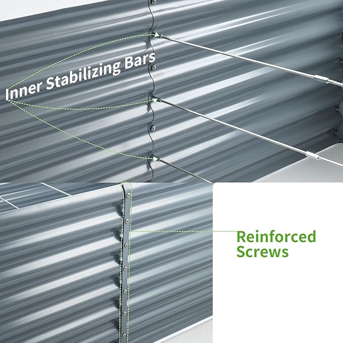 - 【Sturdy and Durable】The raised bed is made of thickened galvanized metal for strength and durability. The surface is coated with an upgraded powder coating for strong rust and corrosion resistance for long term use.