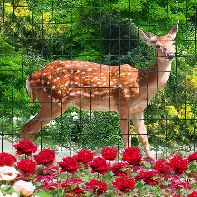 Green PVC Coated Welded Wire Fence 24 Inch x 50 Foot, 2 Inch x 3 Inch 16GA, Garden Border Fencing Roll Vinyl Coating Metal Wire Mesh for Yard Vegetable Plant Protection Poultry Netting