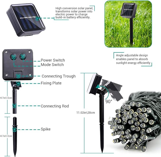 - Widely Used Solar String Lights: These solar-powered string lights are perfect for Halloween, Christmas, weddings, holidays, gardens, yards, lawns, fences, porches, trees, roofs, and decks